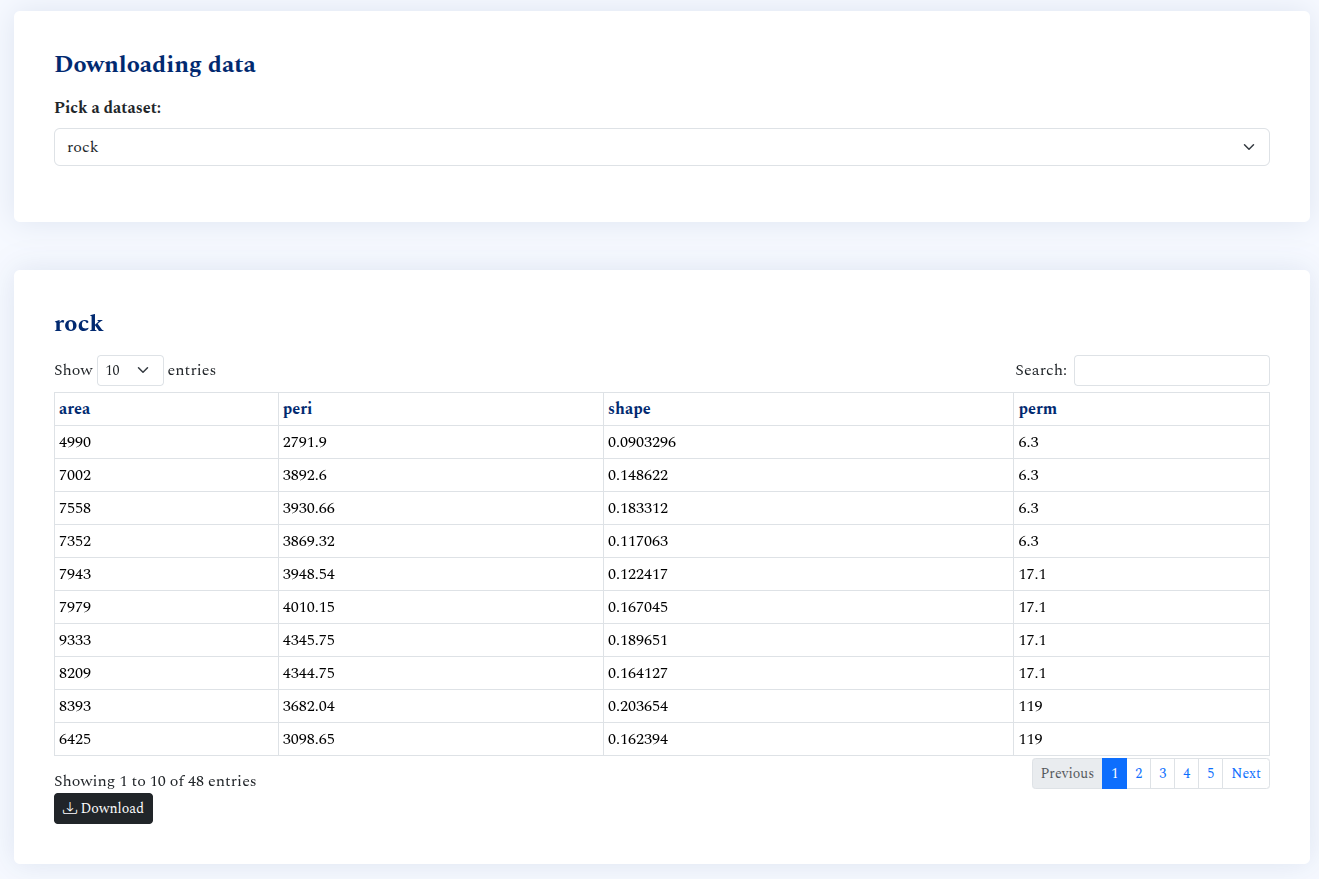 Render datatables, paginate & query data